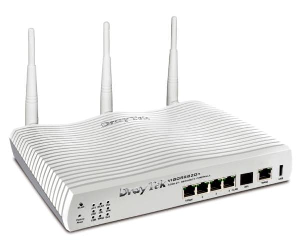 El Vigor2820 es un router preparado Dual WAN para ADSL y ADSL2, cuenta con un puerto RJ11(modem incluido) y un puerto RJ45 (necesita un modem) para conectarlos al Internet, al contar con el Dual WAN puede tener polÃticas de balanceo de cargas, y también incluye administración avanzada de ancho de banda como el QoS, limitación de sesión NAT, etc. Permite una fácil, fiable y flexible administración y control del ancho de banda.