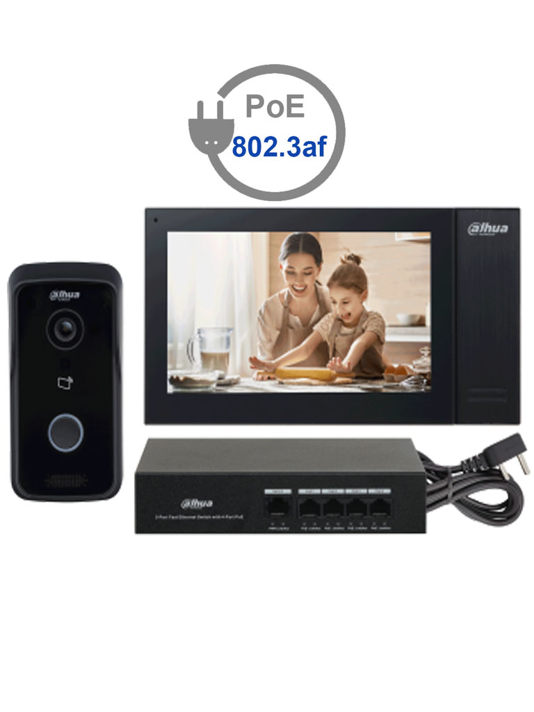 El KITKTP02 es un kit de videoportero que incluye un frente de calle IP VTO2111D-P-S2 el cual permite el acceso mediante tarjeta de proximidad, a trav茅s de la app DMSS y desde el VTH, el cual viene incluido en este paquete y es el modelo VTH2421FBP, tambi茅n incluye un switch PoE modelo PFS3005-4ET-36 con el cual puede realizar la conexi贸n de los dispositivos mediante el est谩ndar PoE con esto se disminuye el cableado al enviar energ铆a y red por un mismo cable.