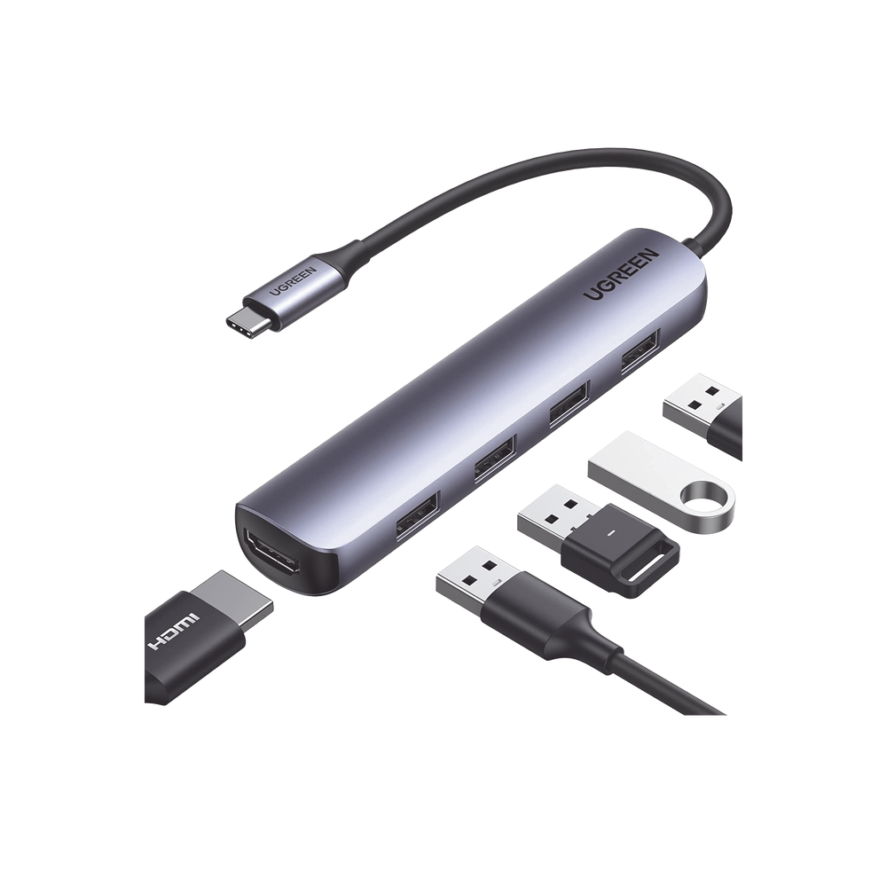 De 1 puerto USB-C 3.0 podemos salir a 1 puertoHDMI 4K@30HZ y 4 puertos USB 3.0, perfecto para MacBook y otros portátil / Celular